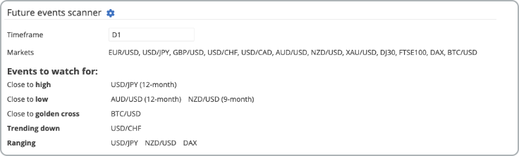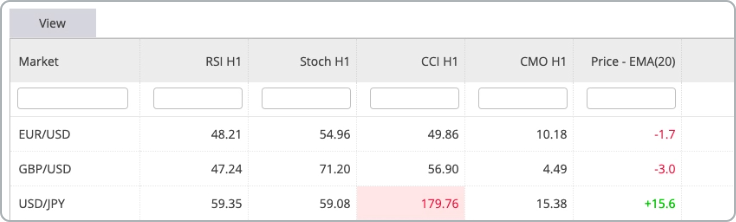 The market scanner lets you monitor technical analysis on multiple markets from a single concise page.