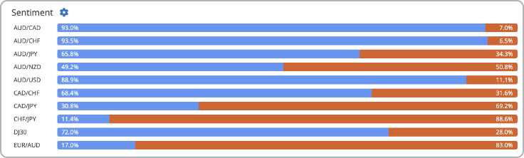 The sentiment is based on the number of real-money accounts (not demo) on FX Blue which are currently net-long or net-short.
