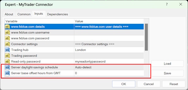 You only need to change these settings if your broker's server is not set to this common time zone. You need to select the daylight saving schedule, and the base number of hours behind/ahead of GMT. Some examples: