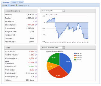 If you run your own website and are proficient in Javascript, you can use scripts provided by FX Blue Live to show headline account information in any format. You can also combine information from multiple accounts.